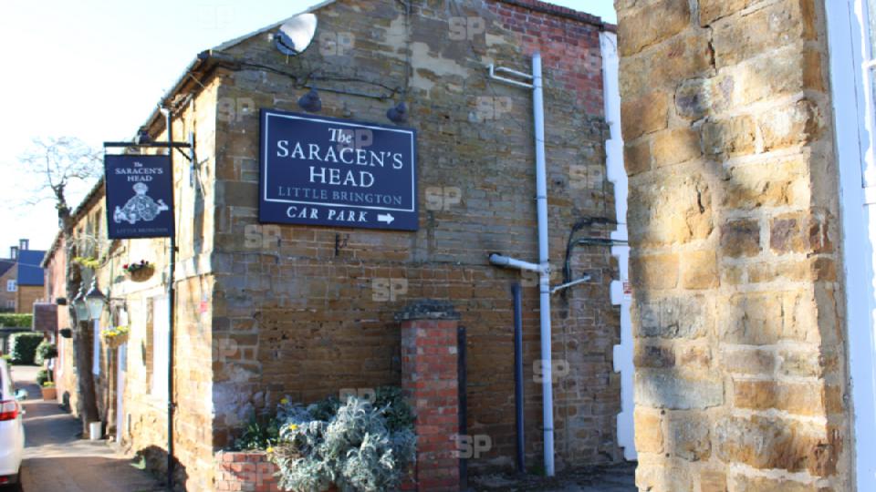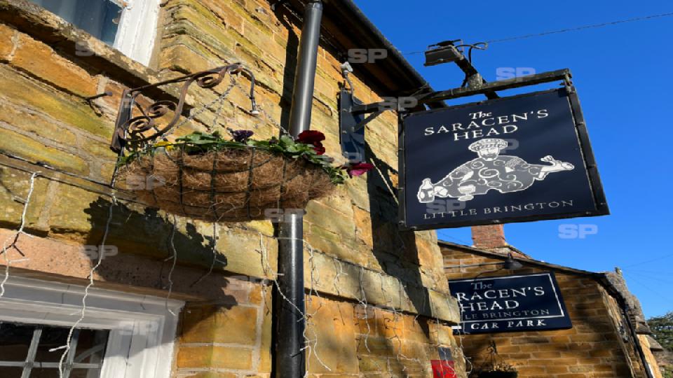 Great Brington. "The Saracens Head" is the local public house. The church of "St. John" is located on the edge of the village neighbouring the village of Nobottle. Unusually the church remains has a spire but no nave. The main body of the church, due to disrepair was demolished in 1947.